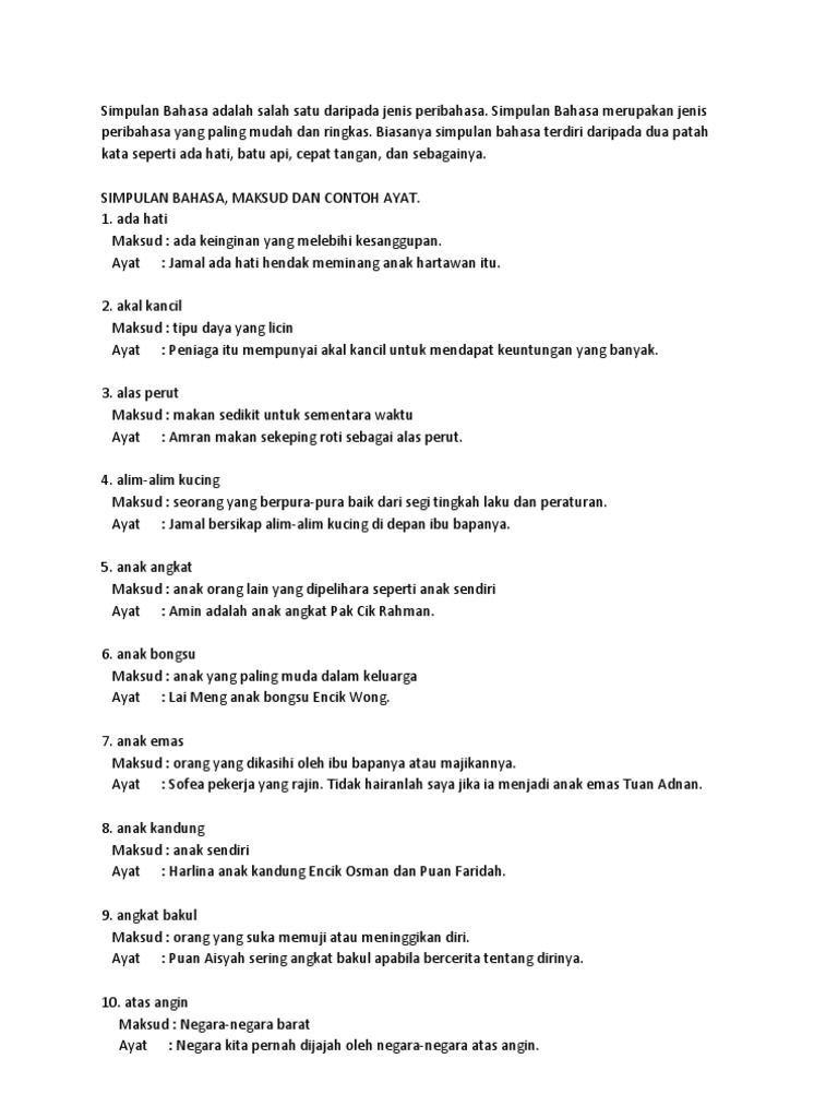 Maksud Simpulan Bahasa Dan Contoh Peribahasa Simpulan
