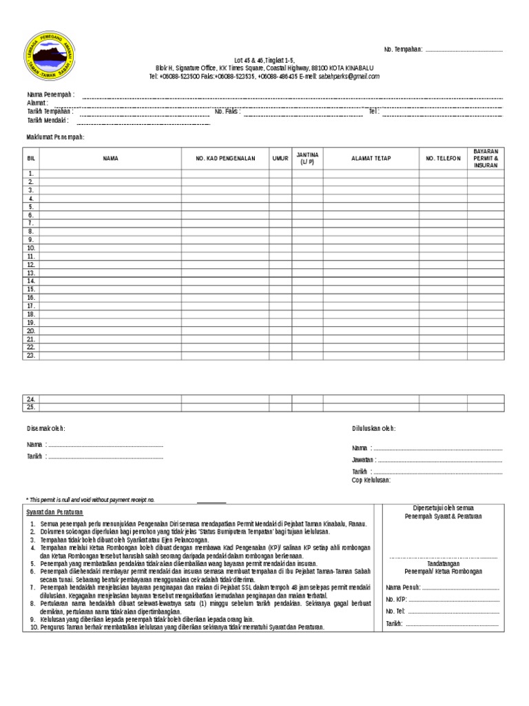 Borang Mendaki Bagi Pendaki Sabah