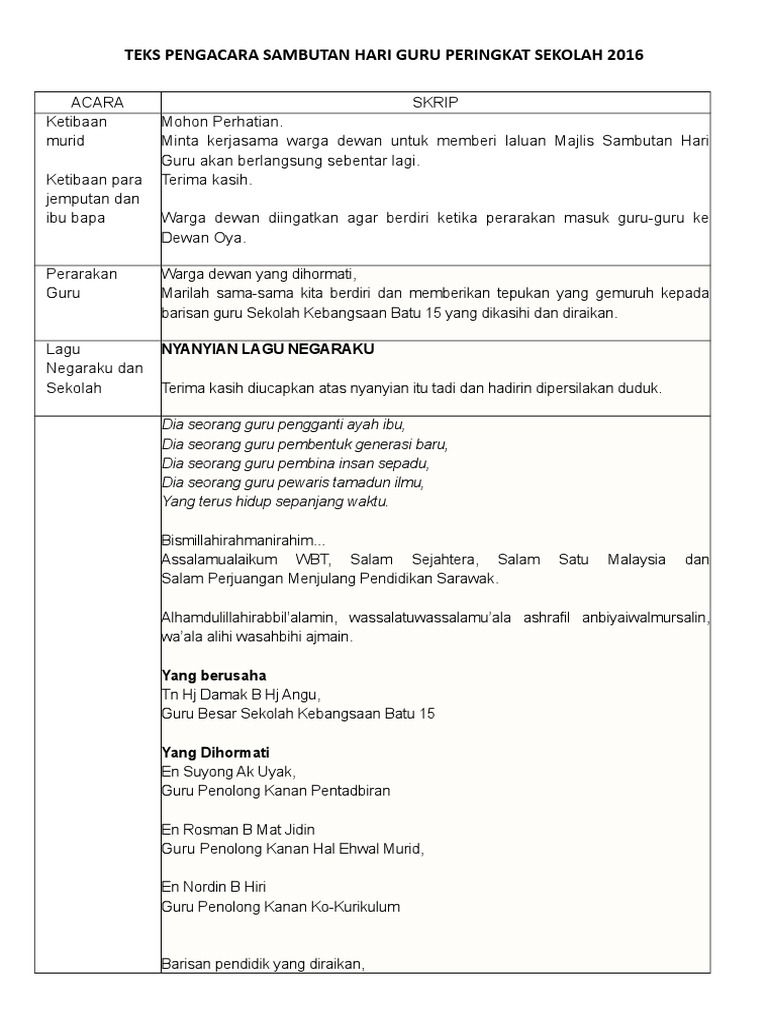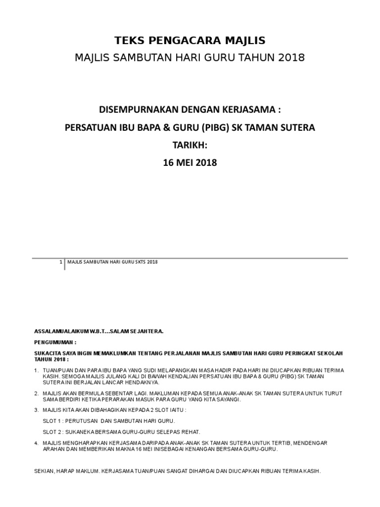Doc Teks Ucapan Pengacara Majlis Sambutan Hari Guru Dan Pekerja