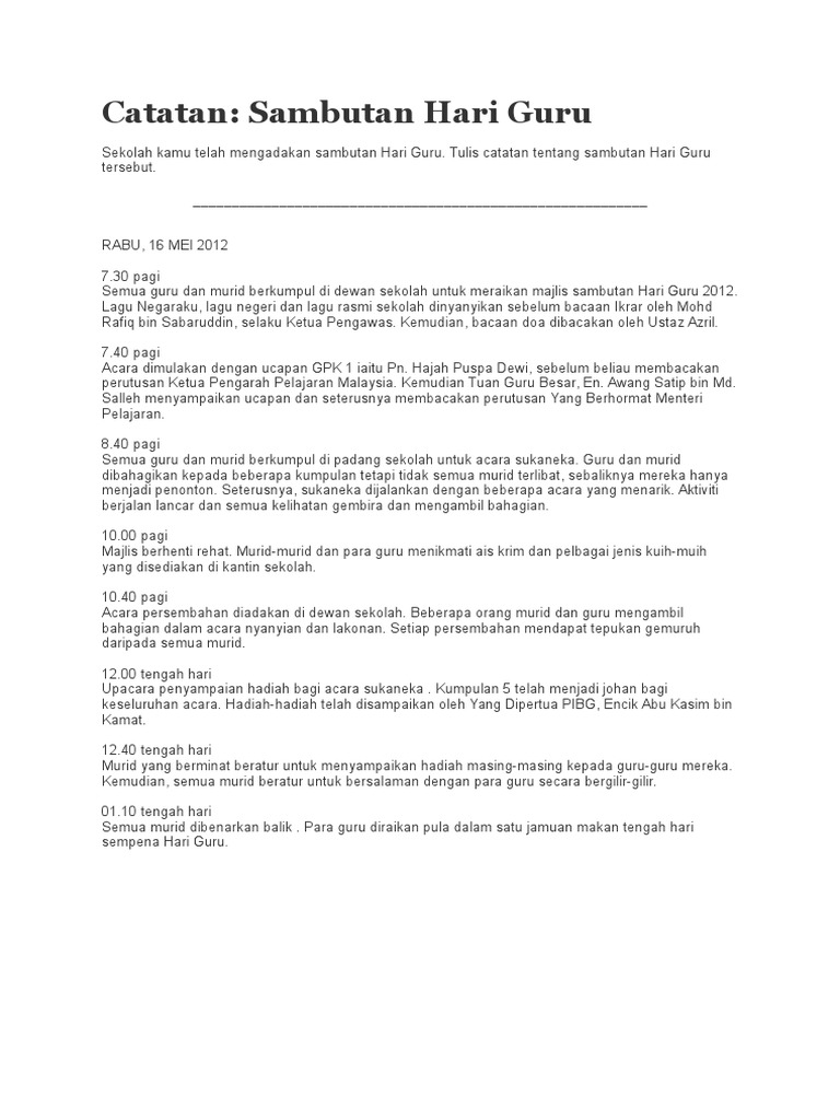Contoh Catatan Hari Guru Download Doc