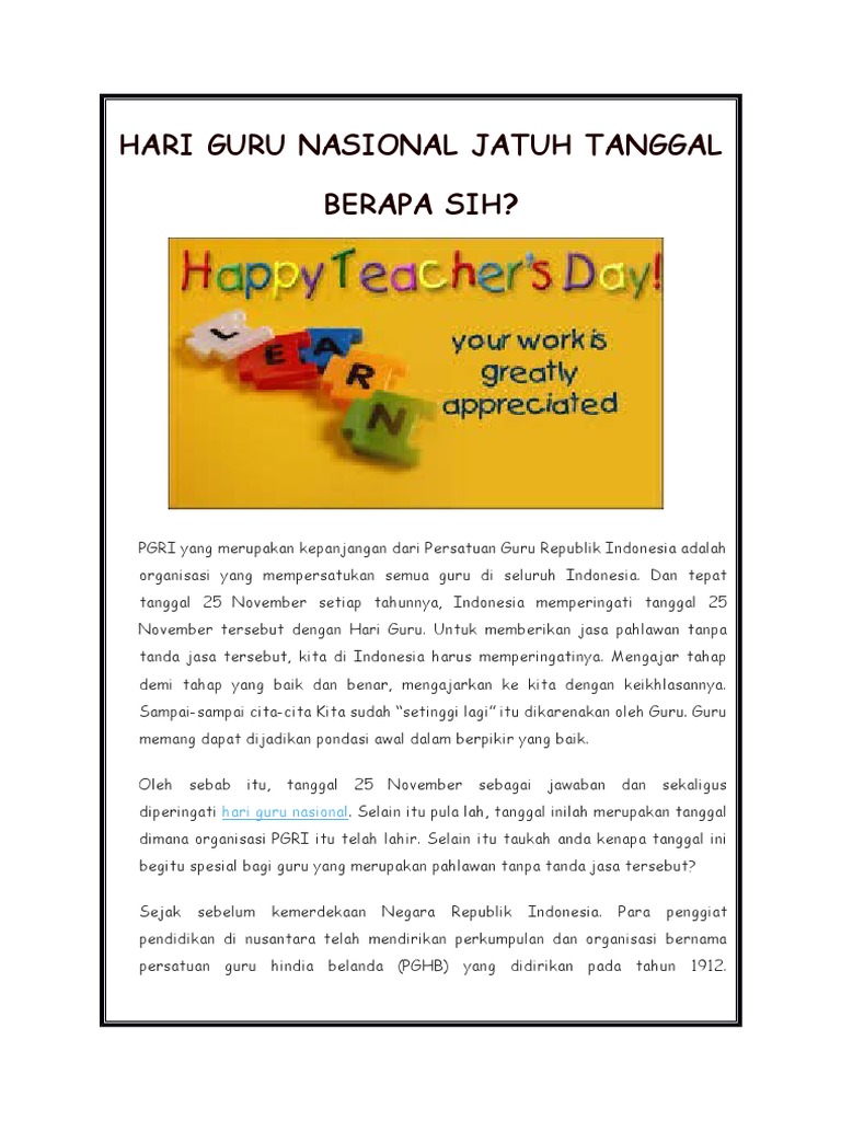 Hari Guru Nasional Jatuh Tanggal Berapa Sih