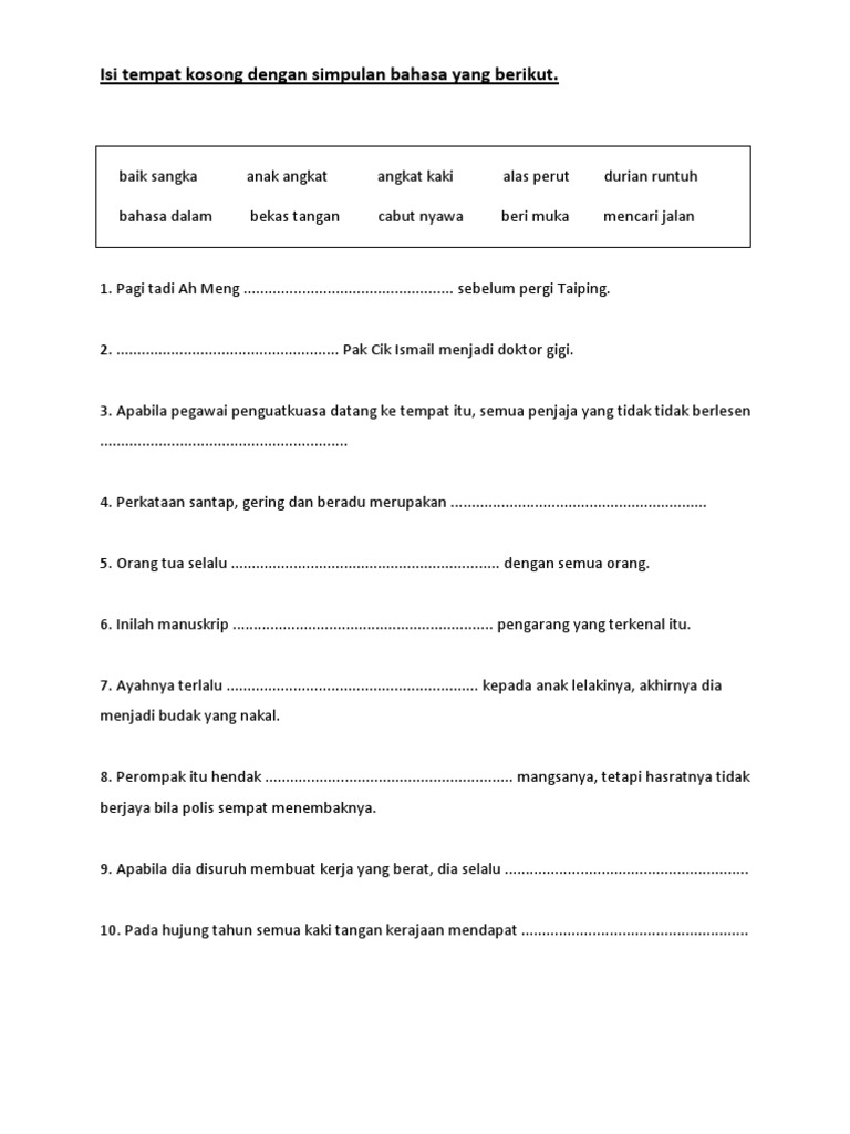 Latihan Simpulan Bahasa Untuk Bahasa Malaysia Thn 2 3
