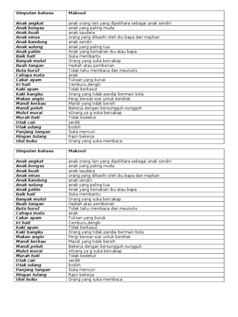 Maksud Simpulan Bahasa Dan Contoh Peribahasa Simpulan