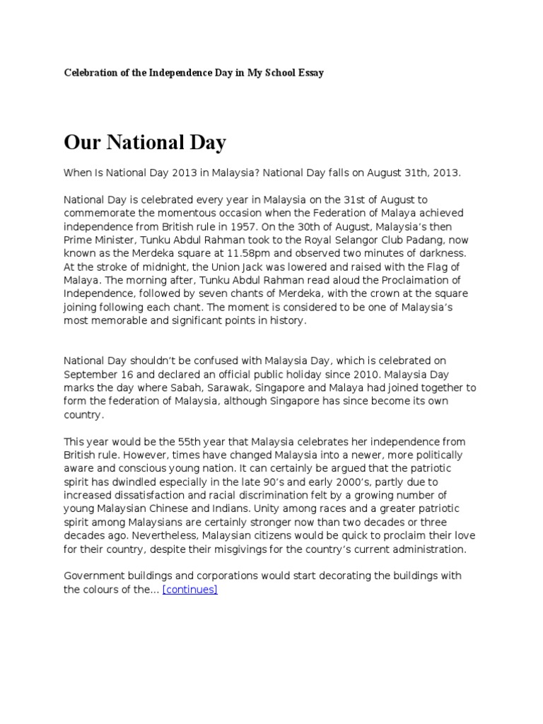 Example Essay National Day Celebration Malaysia