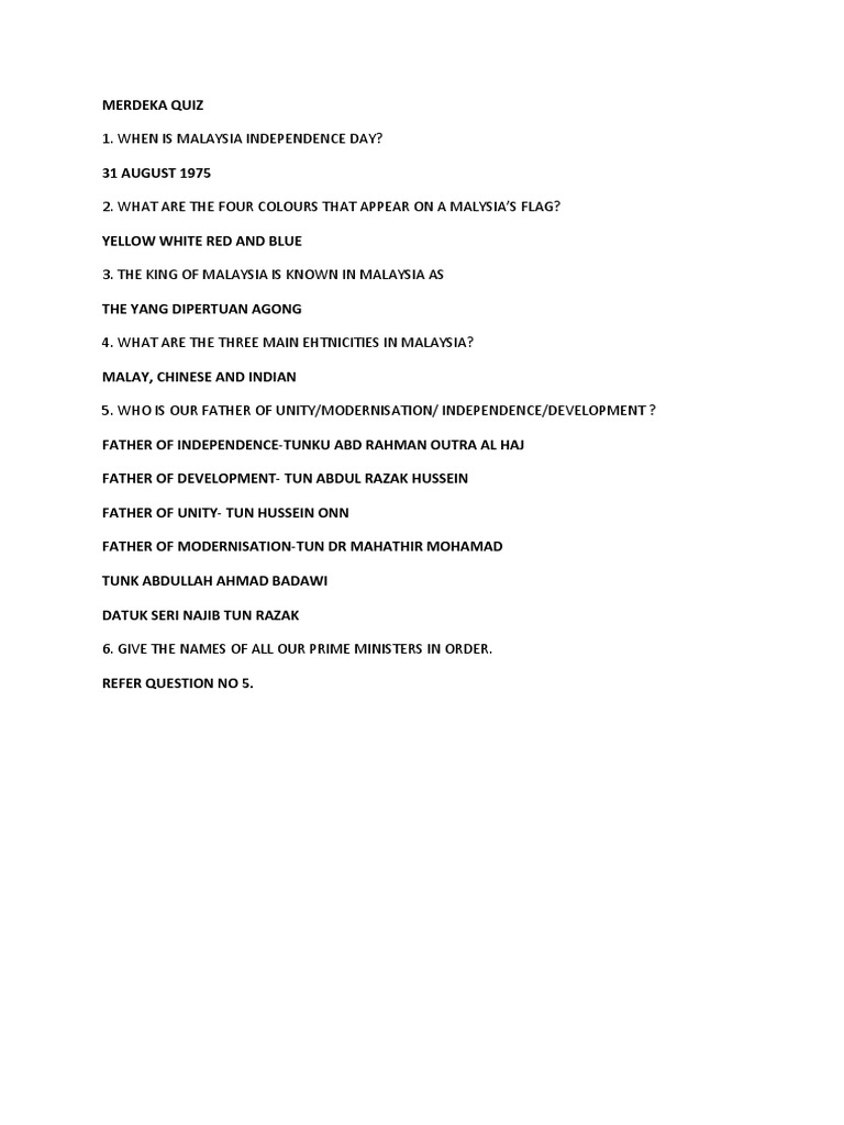 Malaysia Independence Day Question
