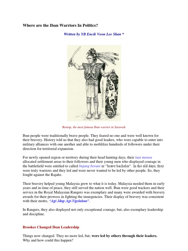 Where Are The Iban Warriors In Politics Sarawak Malaysia