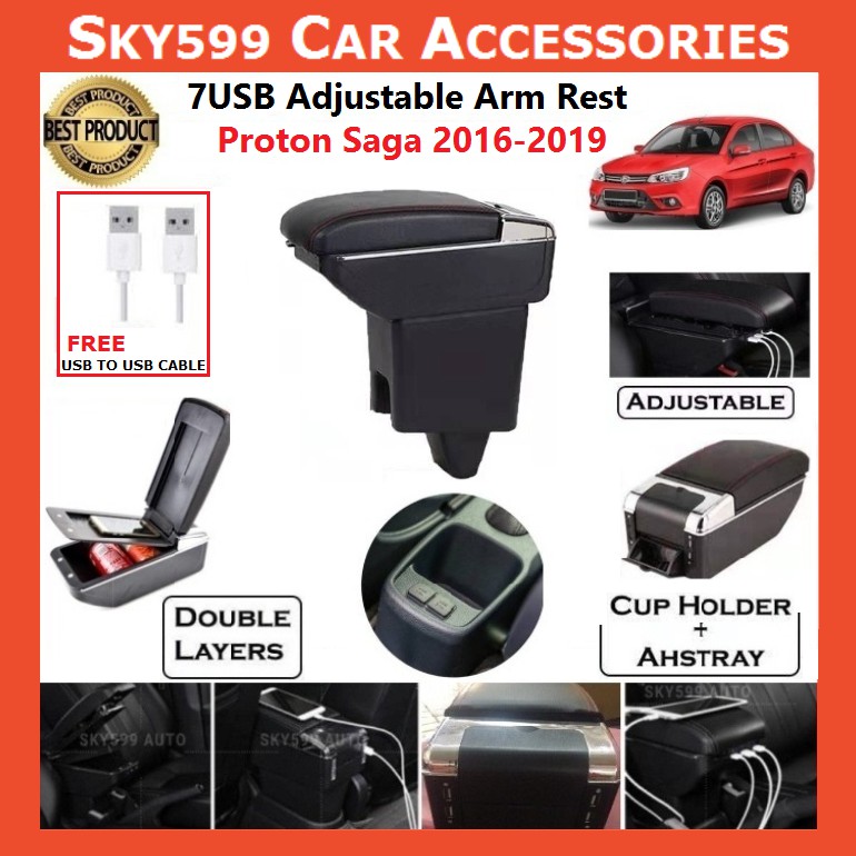Proton Saga 2016 2020 7usb Double Layers Adjustable Arm Rest Armrest Shopee Malaysia
