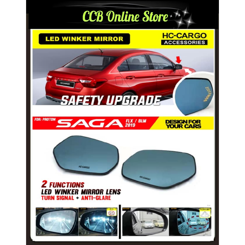 Proton Saga 2019 Present Rear View Side Led Winker Blue Mirror Lens With Led Signal Indicator Anti Glare Hc Cargo Shopee Malaysia
