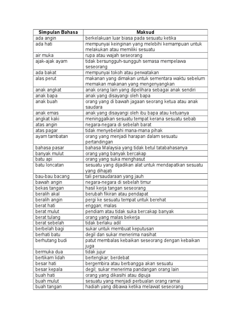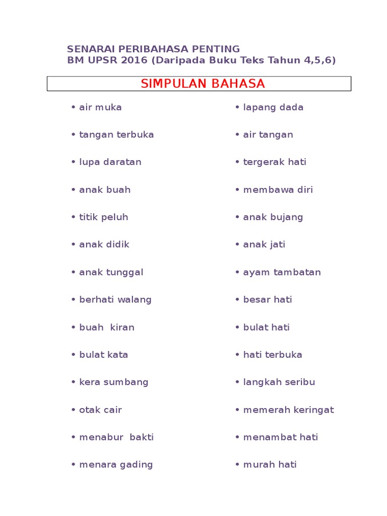 Koleksi Simpulan Bahasa Sekolah Rendah Download Docx