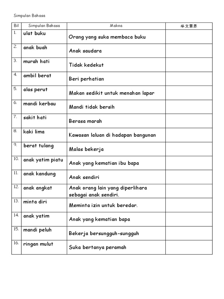Simpulan Bahasa Tahun 2 Latihan Pdf