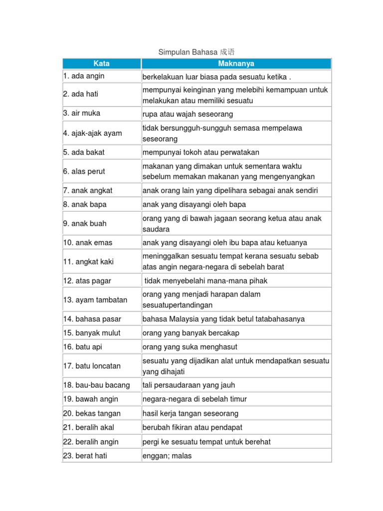Koleksi Simpulan Bahasa Sekolah Rendah Download Docx