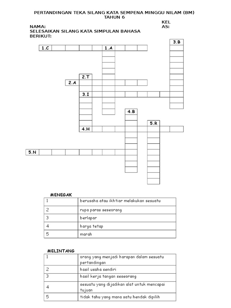 Teka Silang Kata Bm T6 Simpulan Bahasa