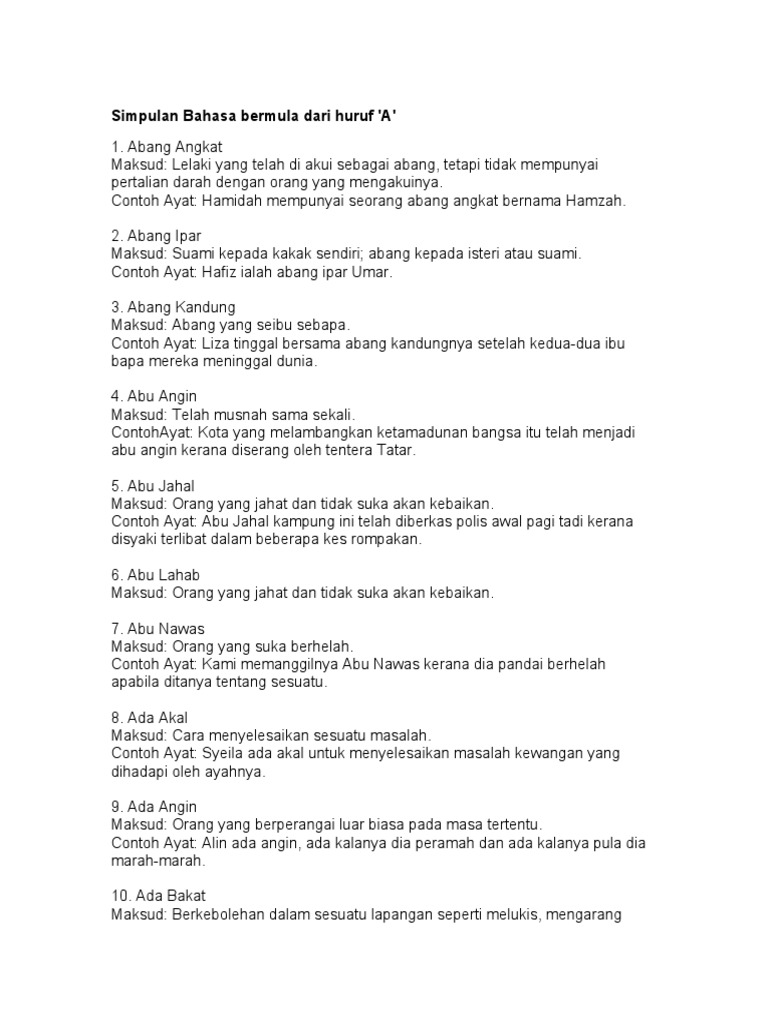 Simpulan Bahasa Bermula Dari Huruf Docx Document