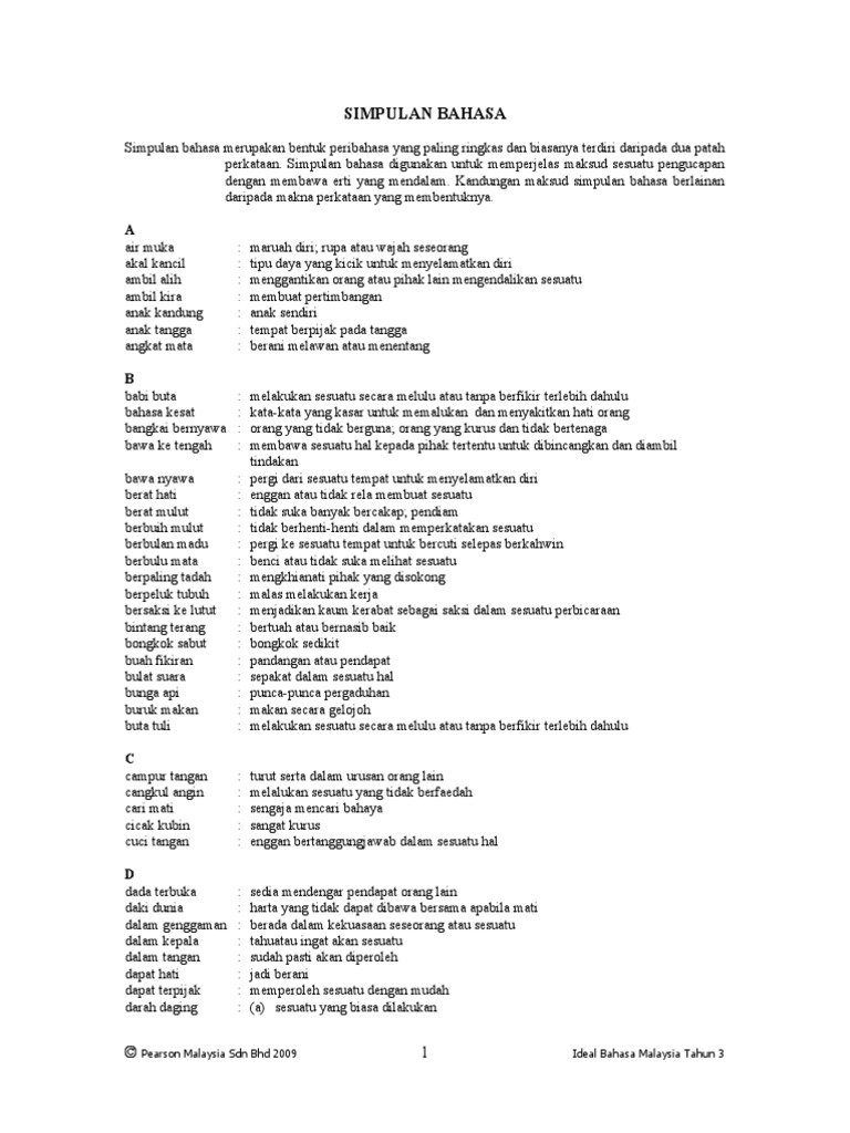 Nota Bahasa Melayu Sekolah Rendah Nota Simpulan Bahasa