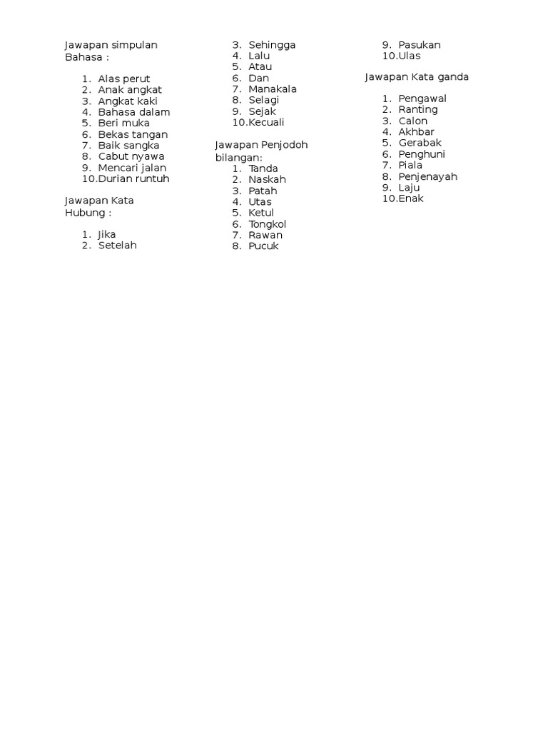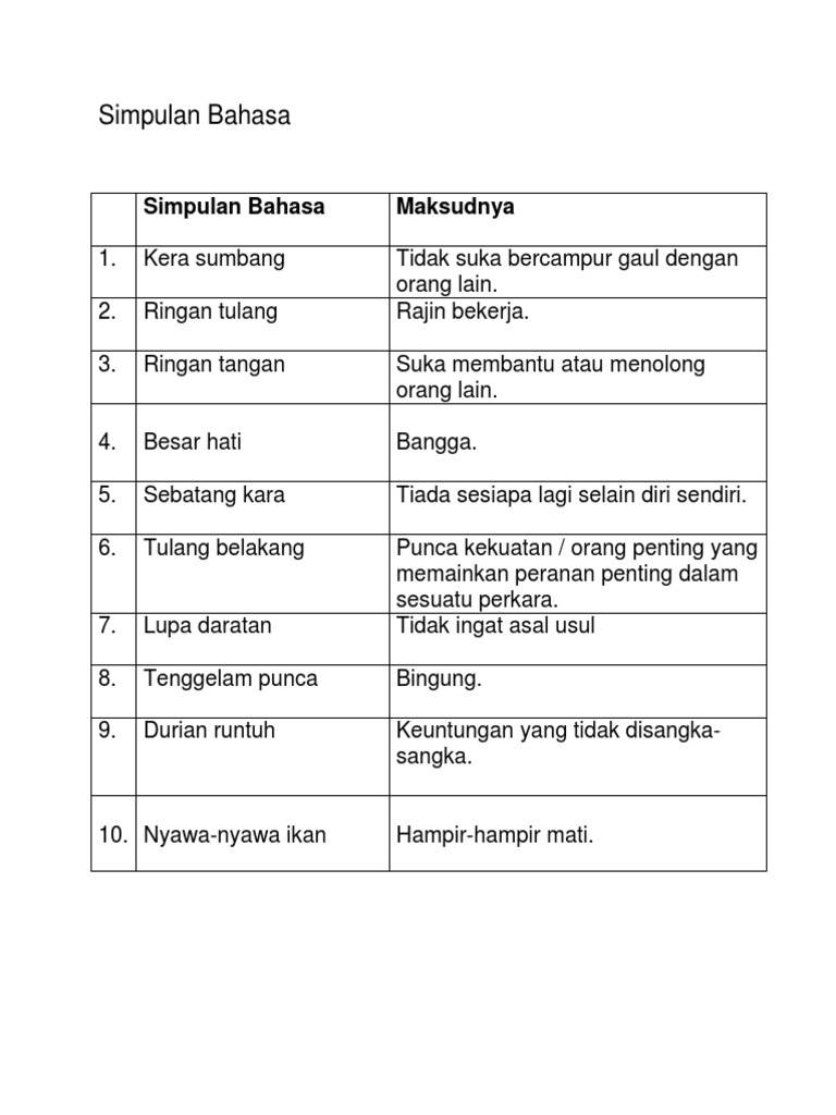 Contoh Ayat Simpulan Bahasa Tahun 4