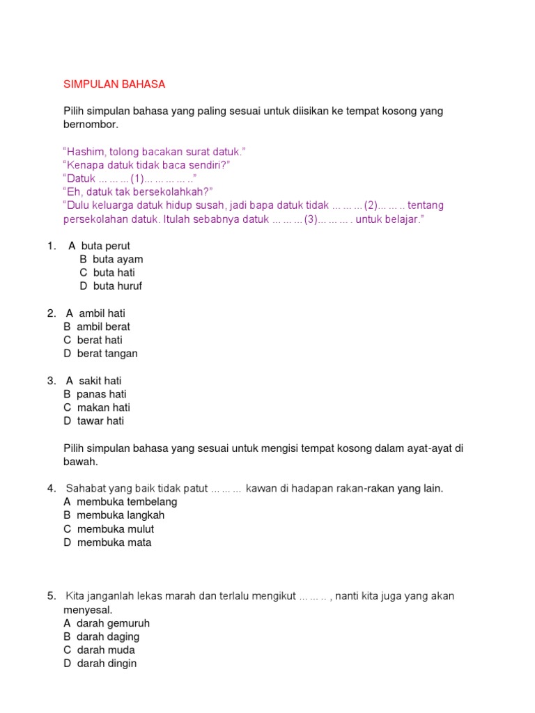 Latihan Peribahasa Tahun 5 Cikimm Com