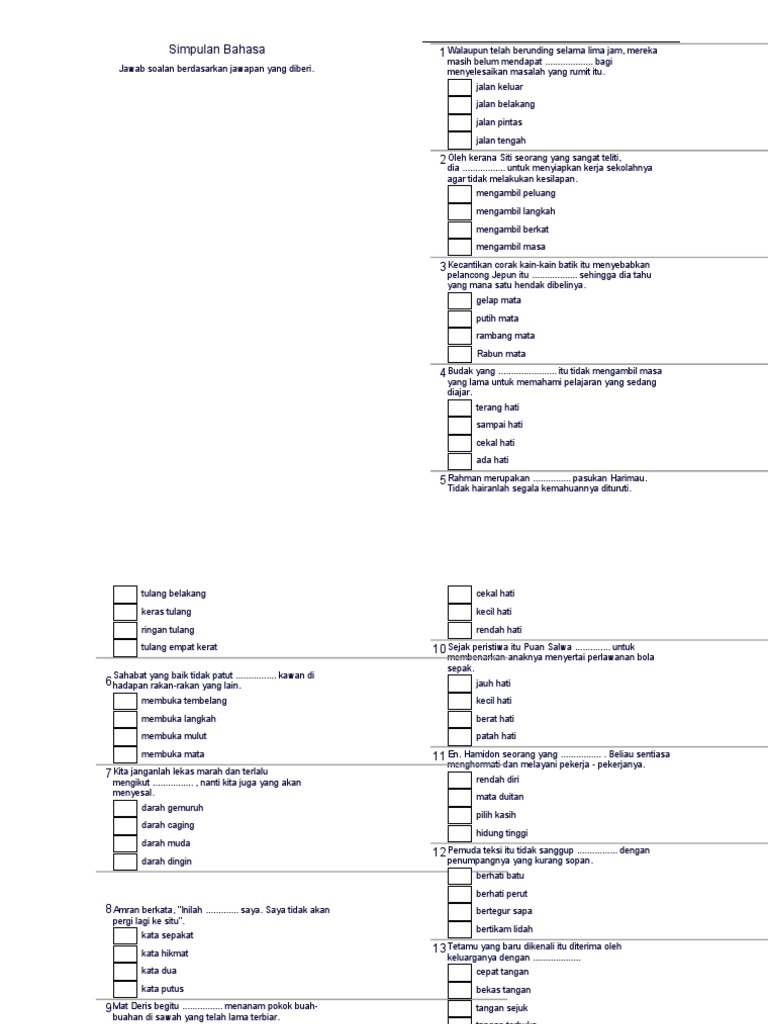 Soalan Simpulan Bahasa Peribahasa Objektif