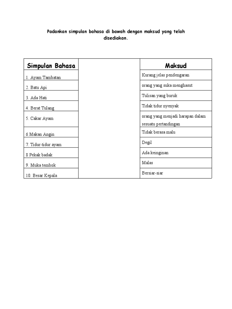 Nota Bahasa Melayu Sekolah Rendah Nota Simpulan Bahasa