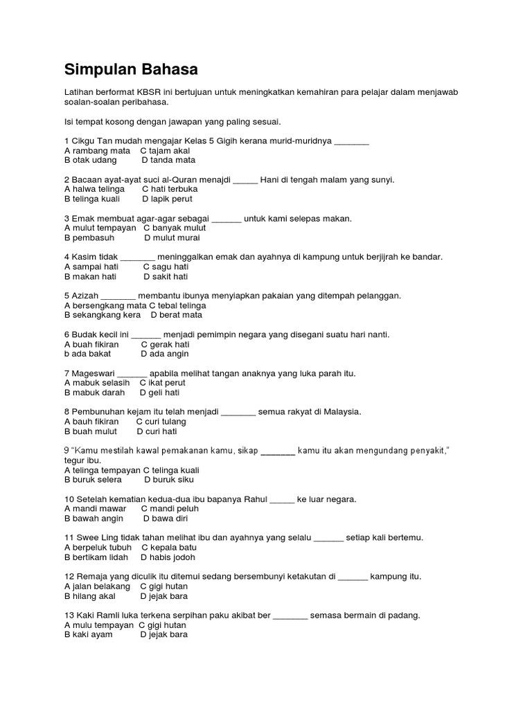 Contoh Simpulan Bahasa Tahun 4 2020