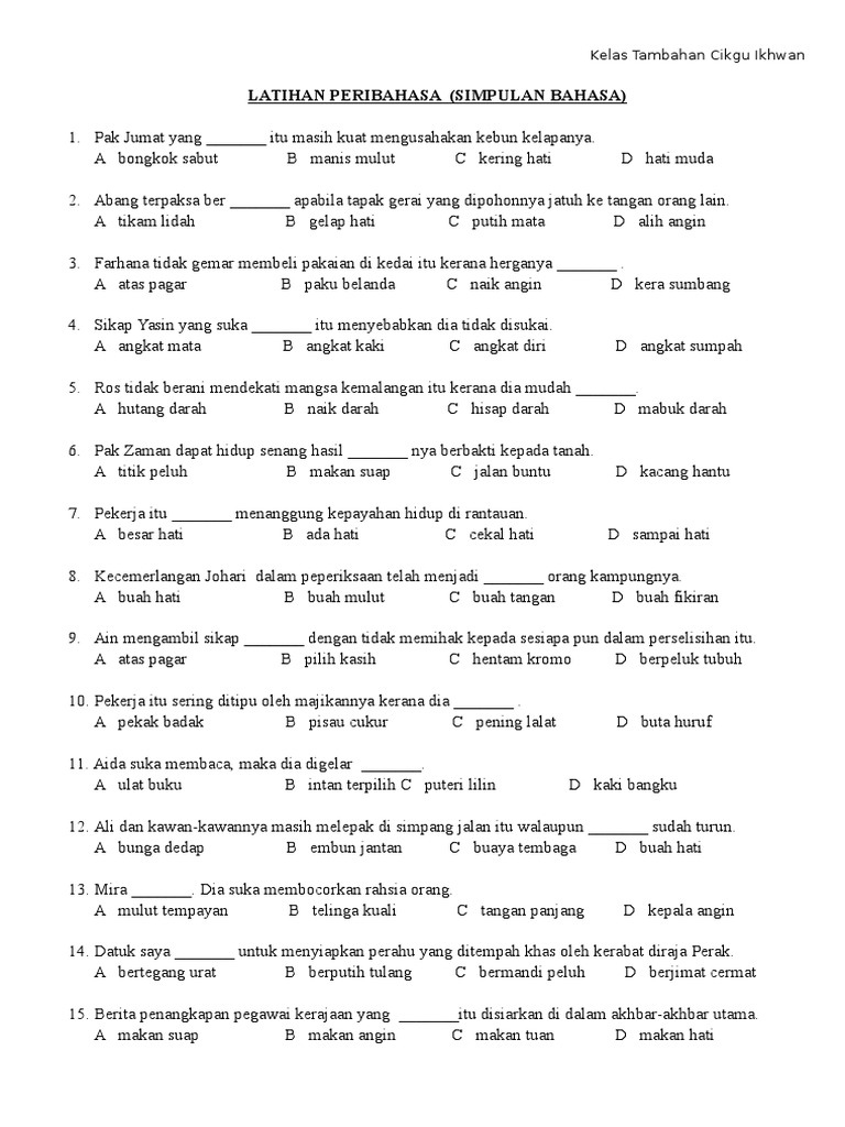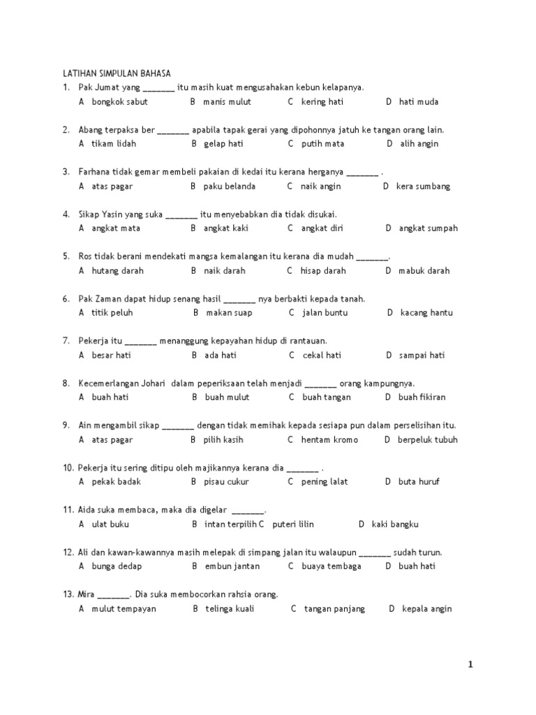 Doc Latihan Simpulan Bahasa Untuk Bahasa Malaysia Thn 2 3